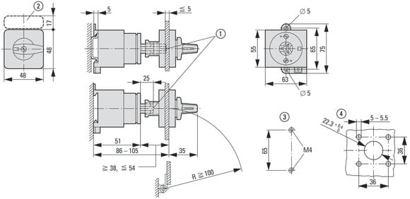 EATON INDUSTRIES - Interruttore T3-1-102/Z ON/OFF, 32A, a comando rinviato, 1 Unità costruttiva, 2 poli, con leva nera e targhetta frontale.