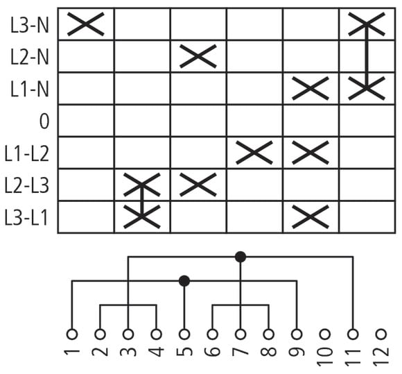 EATON INDUSTRIES - Interruttore voltmetrico T0-3-8007, 20A, da incasso a fissaggio centrale, 3 unità costruttive, 6 contatti a 45°, ritentivo, posizione 0 Off, fase/fa. 098186