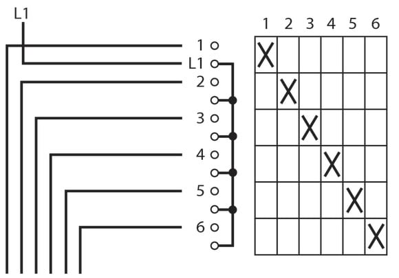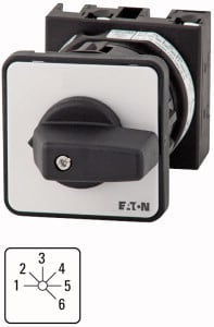 EATON INDUSTRIES - Interruttori a gradini, T0, 20 A, da incasso a fissaggio centrale, 3 Unità costruttiva/e, Contatti: 6, 45 °, permanente, senza posizione 0, 1-6, numer T0-3-151/EZ.