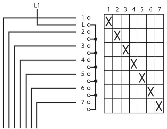 EATON INDUSTRIES - Interruttori a gradini, T0, 20 A, da incasso a fissaggio centrale, 4 Unità costruttiva/e, Contatti: 7, 45 °, permanente, senza posizione 0, 1-7, numer T0-4-152/EZ.