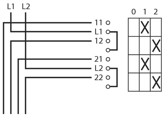 EATON INDUSTRIES - Interruttori a gradini, T0, 20 A, Da incasso in sistemi di distribuzione modulare, 2 Unità costruttiva/e, Contatti: 4, 45 °, permanente, con posizione T0-2-15130/IVS.