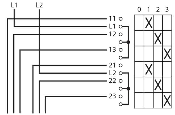 EATON INDUSTRIES - Interruttori a gradini, T0, 20 A, Da incasso in sistemi di distribuzione modulare, 3 Unità costruttiva/e, Contatti: 6, 45 °, permanente, con posizione T0-3-15131/IVS.