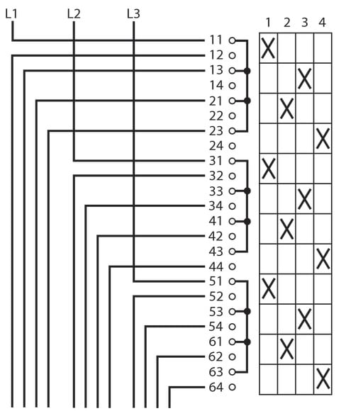EATON INDUSTRIES - Interruttori a gradini, T0, 20 A, montaggio a incasso, 6 Unità costruttiva/e, Contatti: 12, 90 °, permanente, senza posizione 0, 1-4, numero di proget T0-6-15057/E.