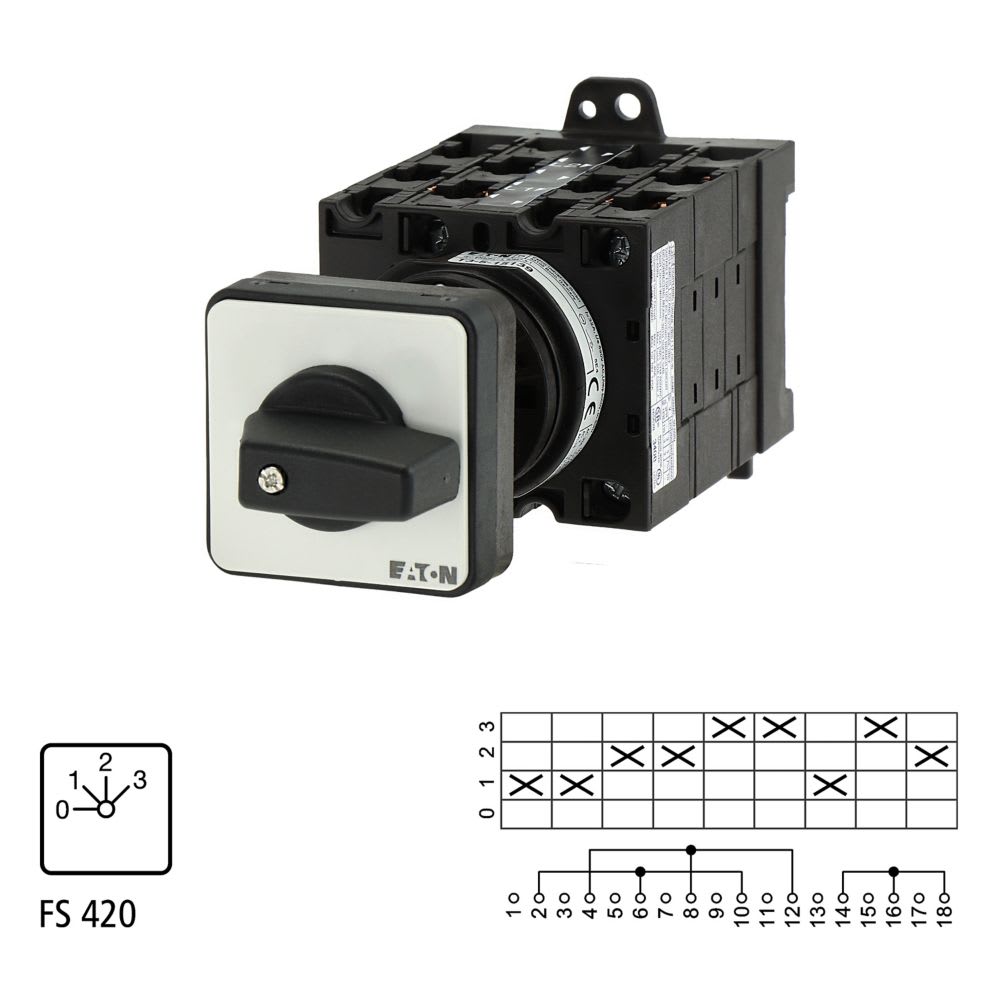 EATON INDUSTRIES - Interruttori a gradini, T3, 32A, comando rinviato, 5 Unità costruttive, Contatti: 9, 45°, permanente, posizione 0-3, numero progettazi T3-5-8281/Z.