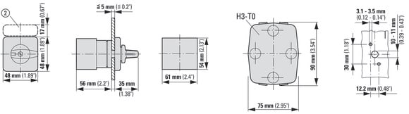 EATON INDUSTRIES - Interruttori a gradini, T3, 32A, montaggio a incasso, 2 Unità costruttive, Contatti: 4, 45°, permanente, con posizione 0, 0-4, numero di progettazione T3-2-8242/E.