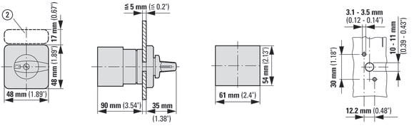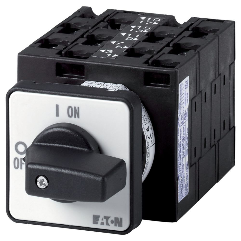 EATON INDUSTRIES - Interruttori a gradini, T3, 32A, montaggio a incasso, 5 Unità costruttive, Contatti: 9, 45°, permanente, con posizione 0-3, numero di progettazione T3-5-15144/E.