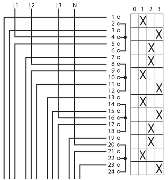 EATON INDUSTRIES - Interruttori a gradini, T5B, 63 A, montaggio a incasso, 6 Unità costruttiva/e, Contatti: 12, 45 °, permanente, con posizione 0, 0-3, numero di progett T5B-6-8481/E COMM. A CAM.