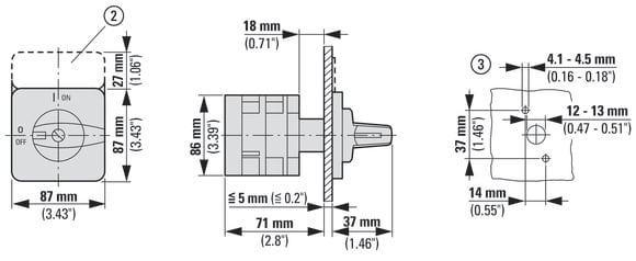EATON INDUSTRIES - Invertitore T5B 63A a incasso, 2 Unità costruttive, Contatti: 4, 60°, stabile, posizione 0 (Off), 1-0-2, Numero schema 8400/E COMM. A CAMME.