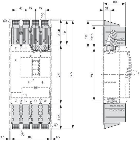 EATON INDUSTRIES - Kit di collegamento con involucro, dissipatore, 4p e 1p NZM3-4-XKV1P-K.