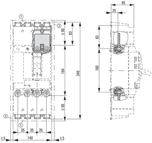 EATON INDUSTRIES - Kit di collegamento, involucro, dissipatore, 4p/2p, sopra/sotto, NZM2-XKV2POU-K.