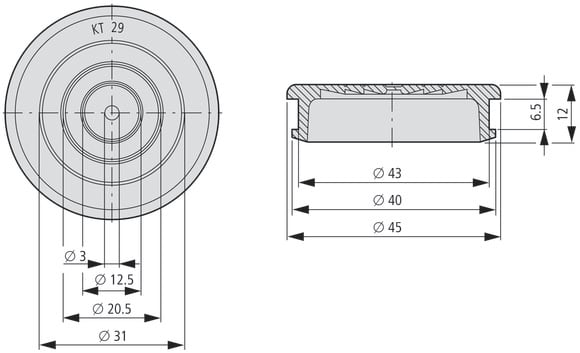 Pressacavi, utilizzabile per spessore parete 2-8mm, PVC morbido, senza cadmio e senza piombo, entrata cavi PG 29, diametro foro=38mm, diametro esterno conduttori=12,5-31mm, impiego cavo NYM/NYY, a 4 conduttori=1,5-35mm², simile RAL 7035