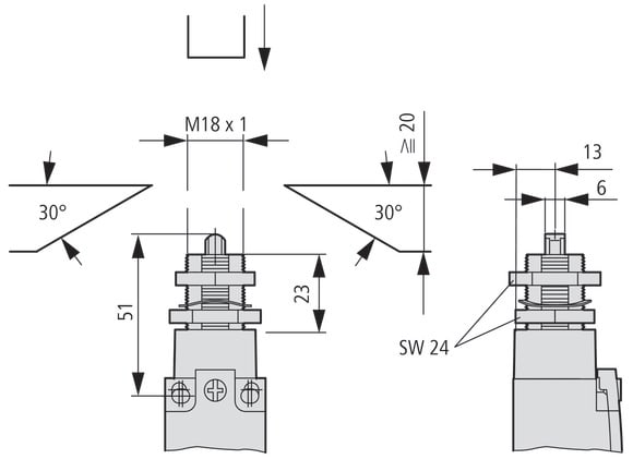 EATON INDUSTRIES - LS-XZS TESTINA FISS. CENTRALE FORO M18X1