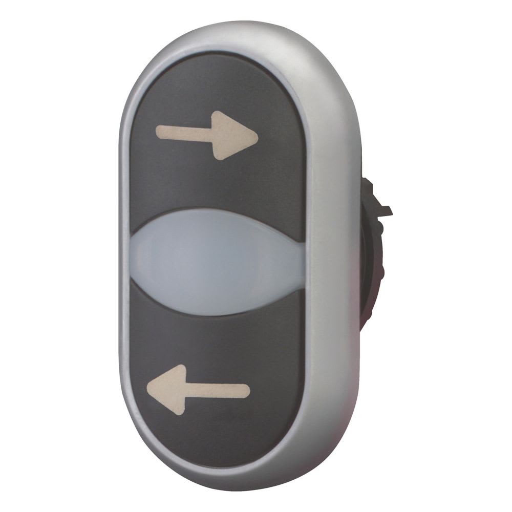EATON INDUSTRIES - M22 doppio pulsante con indicatore luminoso, nero/bianco, dicitura luminosa. 105227