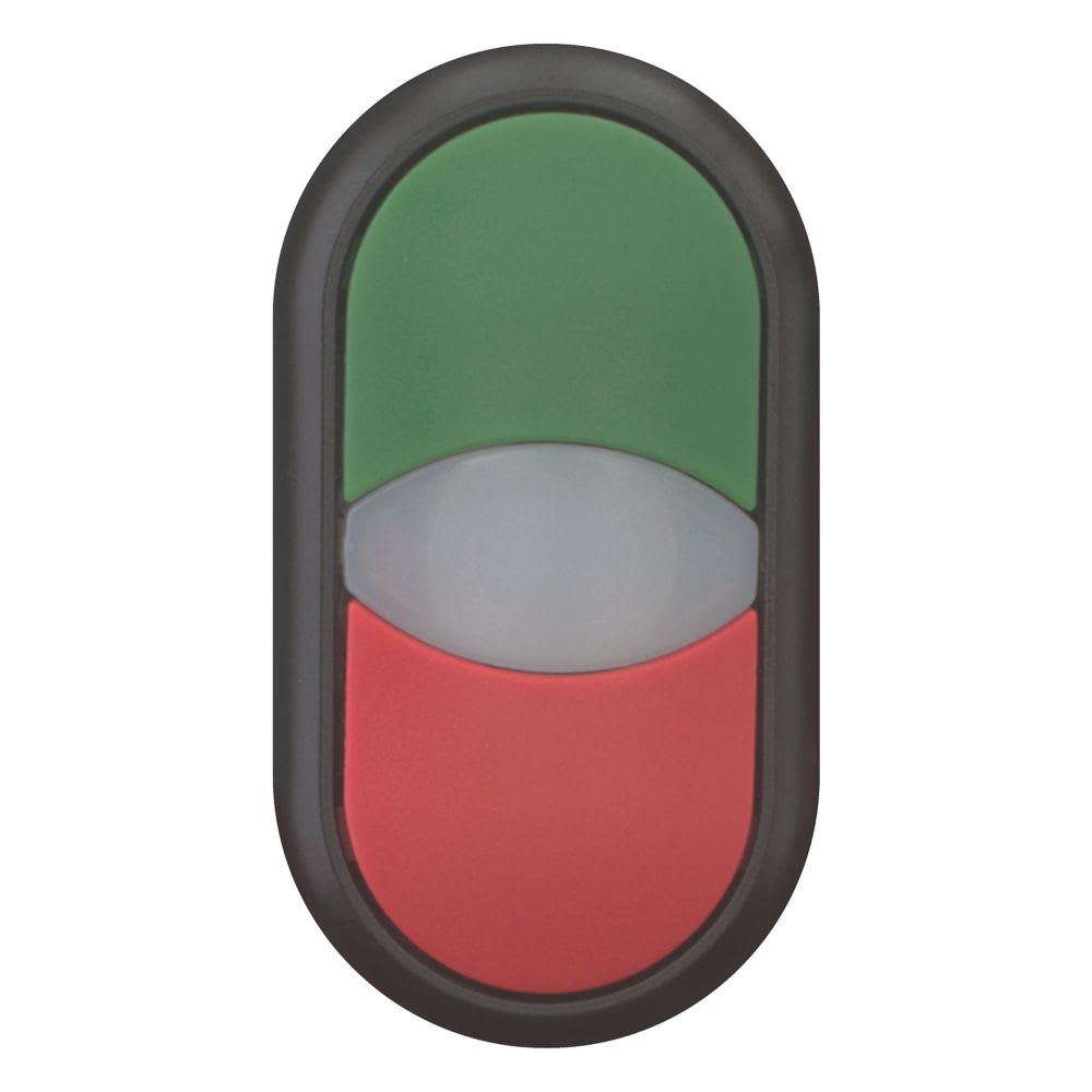 EATON INDUSTRIES - M22S-DDL-GR Pulsante Doppio Luminoso senza Scritta, Lenti Bianche, Verde, Rosso, Ghiera Frontale Nera. 216699
