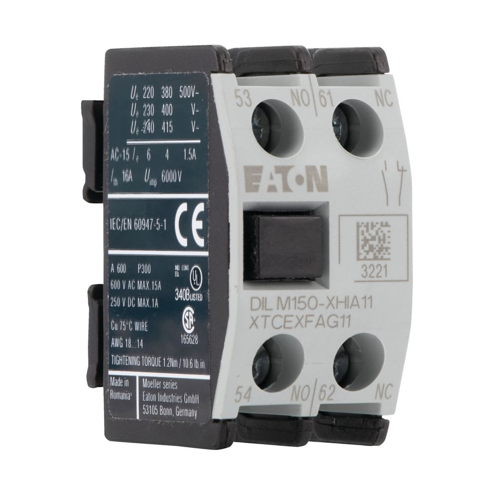 EATON INDUSTRIES - Modulo contatti ausiliari, 2 poli, Ith=16A, 1NA, 1NC, Fissaggio frontale, Morsetti a bullone, DILM40-DILM170, XHIA11. 283463