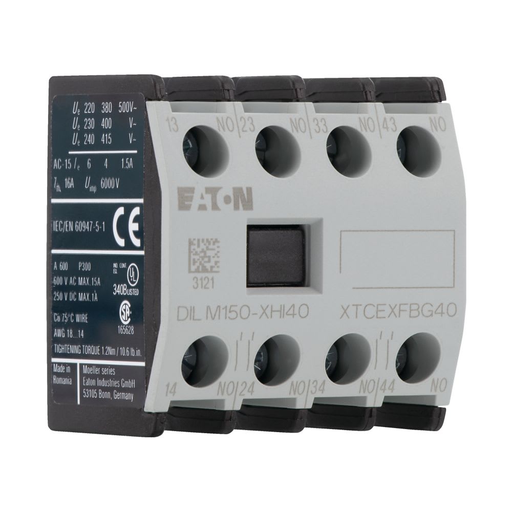 EATON INDUSTRIES - Modulo contatti ausiliari, 4 poli, Ith= 16 A, 4 NA, fissaggio frontale, morsetti a bullone, DILM40 - DILM170. XHI40 contatti ausiliari, 4NA. 277948