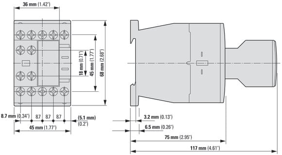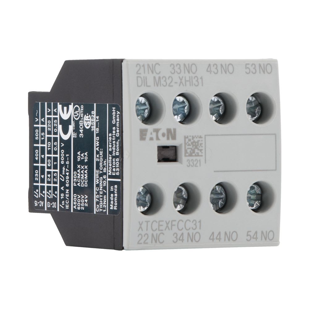 EATON INDUSTRIES - Modulo contatti ausiliari, 4 poli, Ith=16A, 3NA, 1NC, fissaggio frontale, morsetti a bullone, DILM7-10 - DILM38-10, XHI31. 106112
