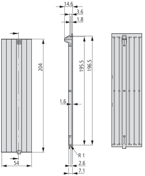 Modulo di copertura per aperture SASY60i con passo modulare di 195 mm, fornito nelle lunghezze = 54 mm