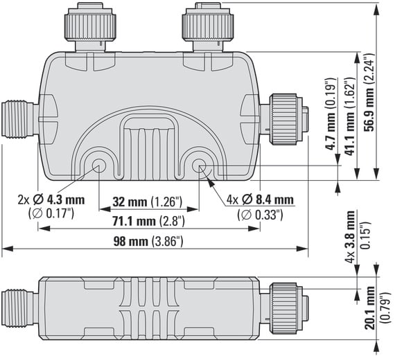 EATON INDUSTRIES - Modulo T-Connector IP67 con connettore a T SmartWire-DT, ingresso/uscita IP69K, 24 VDC, 4 ingressi/uscite configurabili, alimentazione, 2 boccole I/O M12.