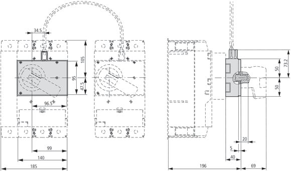 L'accessorio opzionale per gli interruttori automatici di potenza della serie NZM offre un'ampia gamma di possibilità di applicazione per un impiego universale. Il montaggio è flessibile grazie a gruppi funzionali modulari. Note: consente di interbloccare mediante tiranti flessibili 2, 3 o fino a 4 interruttori, anche di diverse grandezze. per ogni interruttore è necessario un modulo interblocco NZM..-XMV e una maniglia rotativa sull'interruttore NZM..-XDV oppure una maniglia per comando rinviato e bloccoporta NZM..-XTVD così come tiranti flessibili. Non in combinazione con maniglie per comando rinviato e bloccoporta NZM..-XTV..-NA omologate UL/CSA o con azionamento parallelo, laterale e a distanza, così come cornice. Utilizzabile per NZM3(-4)1, PN3(-4), N(S)3(-4)