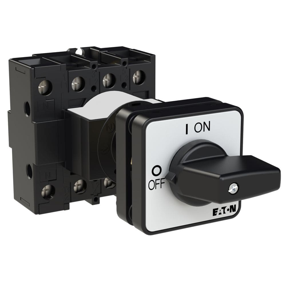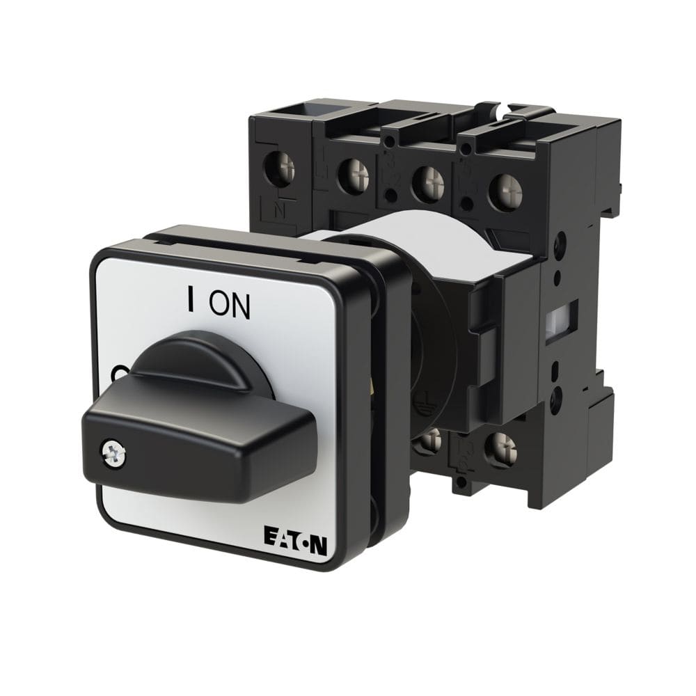 EATON INDUSTRIES - P1-25/Z/N SEZ. Interruttore 25A, ON/OFF, a comando rinviato, 3 poli + N, con leva nera e targhetta frontale.