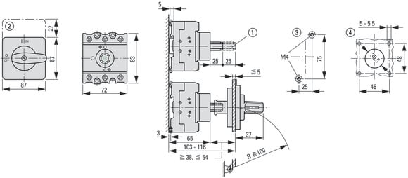 EATON INDUSTRIES - P3-100/Z/N Interruttore ON/OFF, 100A, comando rinviato, 3 poli + N, leva nera, targhetta frontale.