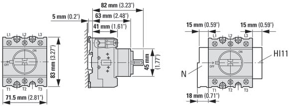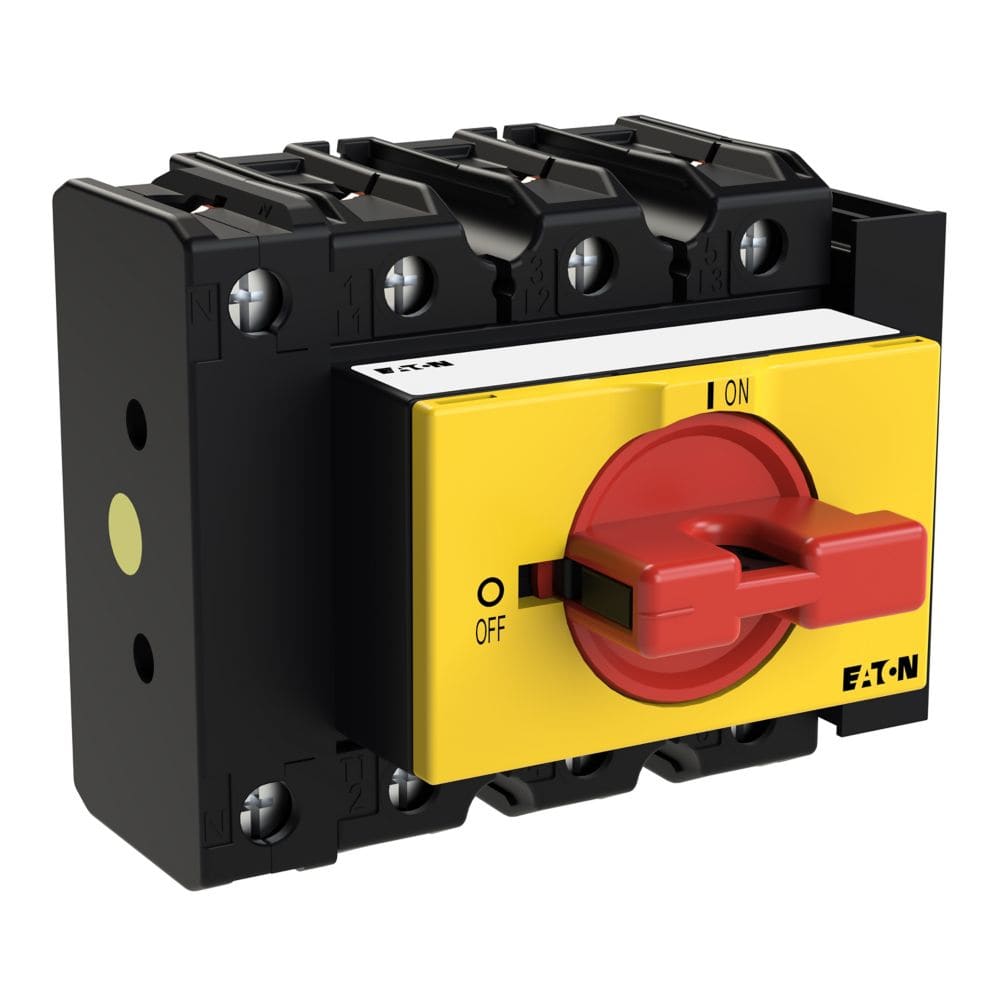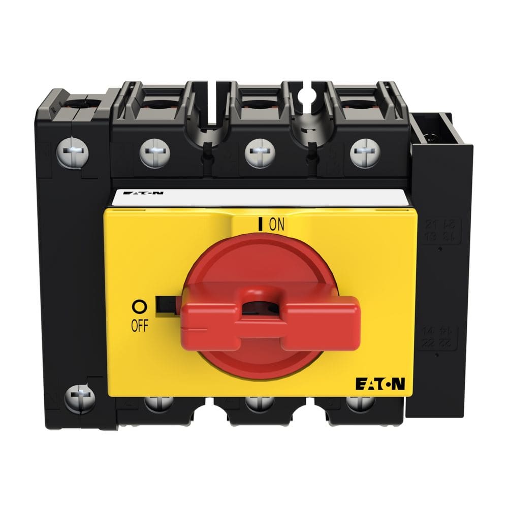 EATON INDUSTRIES - P3 Interruttore ON/OFF, 63A, Da incasso in sistemi di distribuzione modulare, 3 poli + N, 1 NA, 1 NC, Funzione di arresto d'emergenza, con leva rossa.