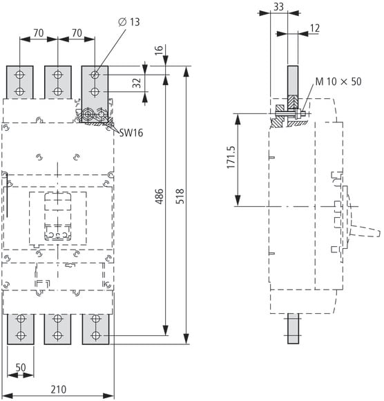 EATON INDUSTRIES - Piastra di collegamento verticale per modulo 2 fori 3P 1250A NZM4-XKM2S-1250. 284471