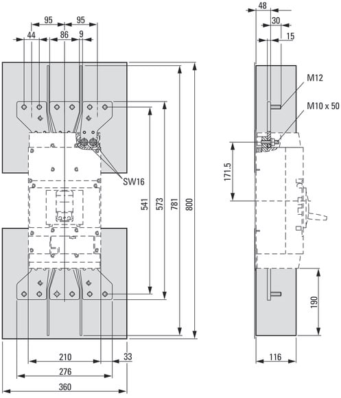 EATON INDUSTRIES - Piastre di collegamento allargate, 3p, 2 prigionieri, dimensione 3 NZM4-XKV95-2KB PIASTRE DIVARICATE.