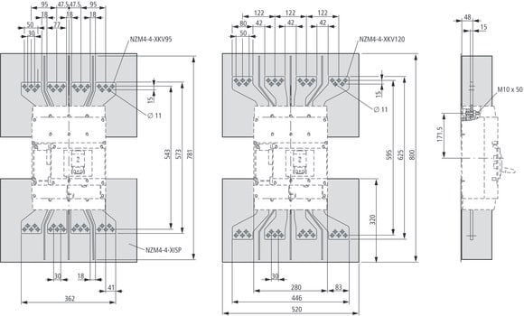 EATON INDUSTRIES - Piastre di collegamento allargate, 4p, interdistanza 110 mm NZM4-XKV120 ESTENS. COLL 4 POLI. 281594