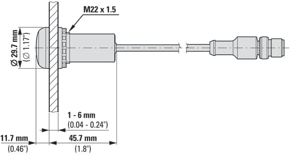 EATON INDUSTRIES - piatto cavo nero connettore M12A 4 poli 0.2 mm blu bianco rosso 24 V DC C22-L-BWR-24-P1 spia conn M12 C 0.2M