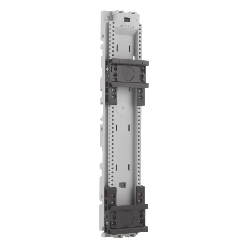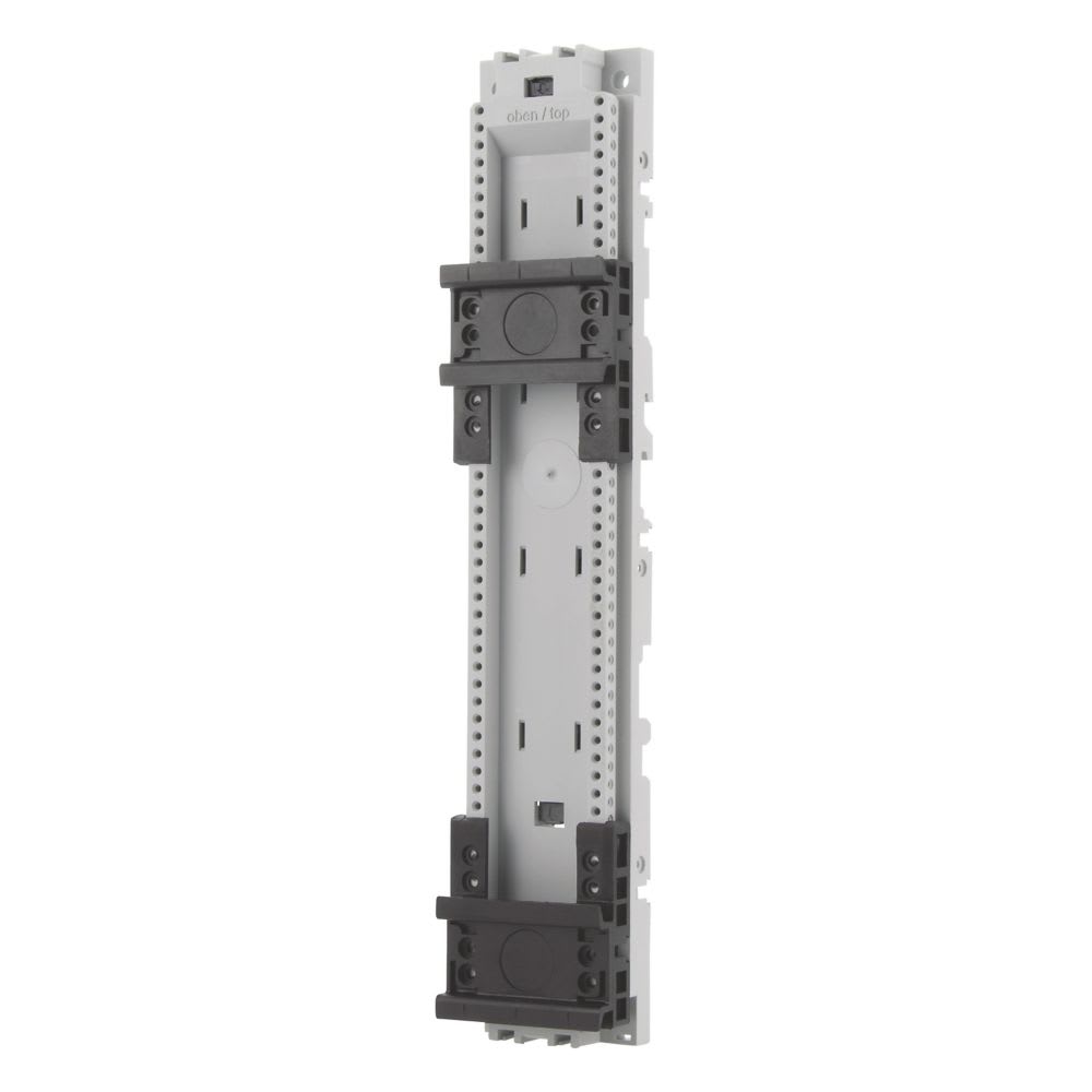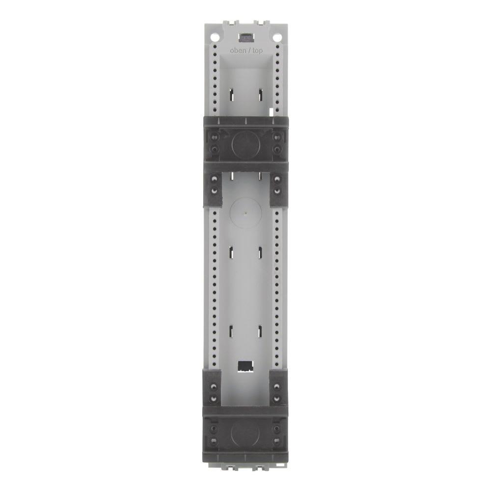 Piastra di adattamento per montaggio su guida DIN costituita da una piastra di adattamento della larghezza di 55 mm, elemento di collegamento per ulteriori piastre, utilizzabile per teleinvertitori e avviatori stella-triangolo