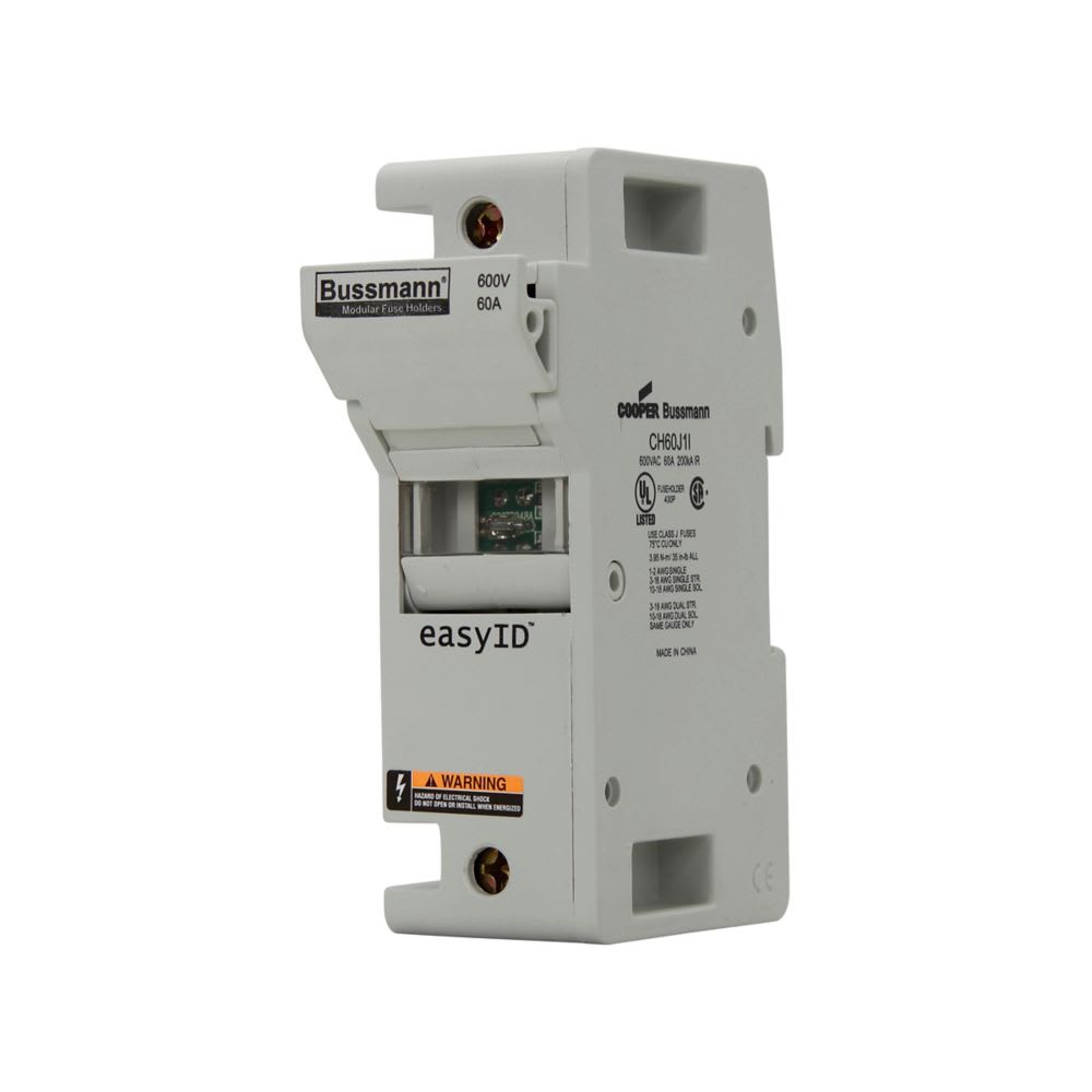 EATON INDUSTRIES - Portafusibile 60A, bassa tensione, AC/DC 600V, 200kA, 40x83x125mm, J, 1P, UL, CSA, indicatore al neon, guida DIN 35mm, realizzazione CH60J1I single. CH60J1I