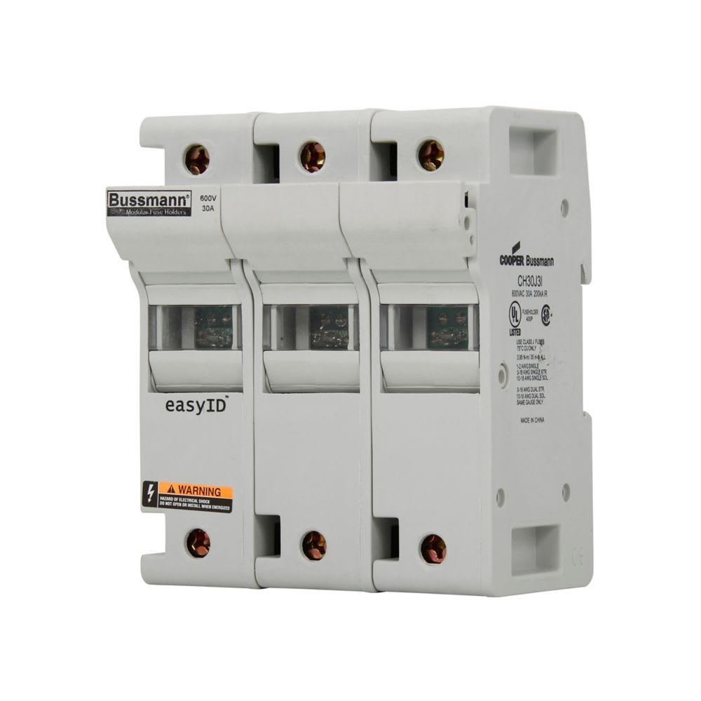 EATON INDUSTRIES - Portafusibile a bassa tensione 30 A AC/DC 600 V 200 kA 98x72x117 mm J 3P UL CSA con indicatore al neon CH30J3I 30AJ Indicator Fuseholder 3 Pole. CH30J3I