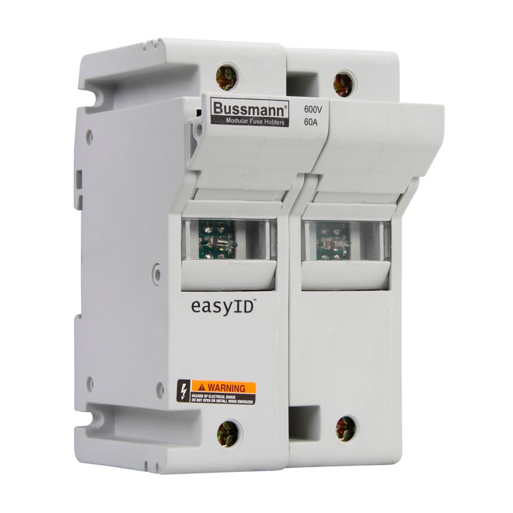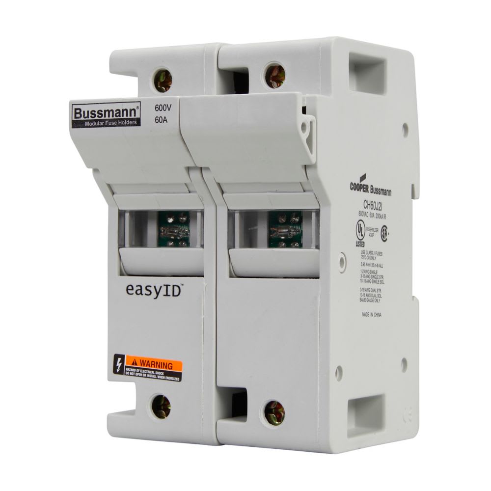 EATON INDUSTRIES - Portafusibile a bassa tensione 60A AC/DC 600V 200kA 80x83x125mm J 2P UL CSA con indicatore al neon e guida DIN 35mm. CH60J2I