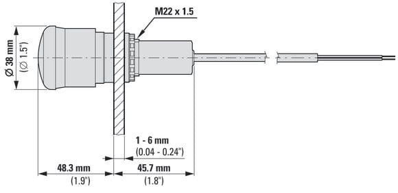 EATON INDUSTRIES - Pulsante d'emergenza/off, fungo 38 mm, sblocco trazione, 2 NC, cavo nero estremità aperta, 4 poli, 3,5 m, C22-PV-K02-P65 P.EMER.38 SB.TRAZ.2NC 3,5. 185170