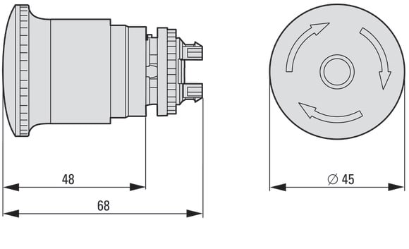 EATON INDUSTRIES - Pulsante d'emergenza/off RMQ-Titan a palmo di mano 45 mm Npn luminoso funzione di sblocco mediante rotazione rosso giallo RAL 3000 M22-PVT45P-MPI fungo em. d.45mm rot. seg. 121463