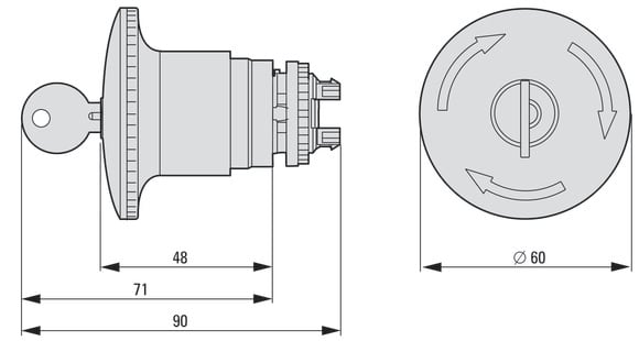 EATON INDUSTRIES - Pulsante d'emergenza/off, RMQ-Titan, Palmare 60 mm, Non illuminato, sblocco a chiave, rosso/giallo, RAL 3000, M22-PVS60P-RS Fungo D.60mm Rot Ch Ron.