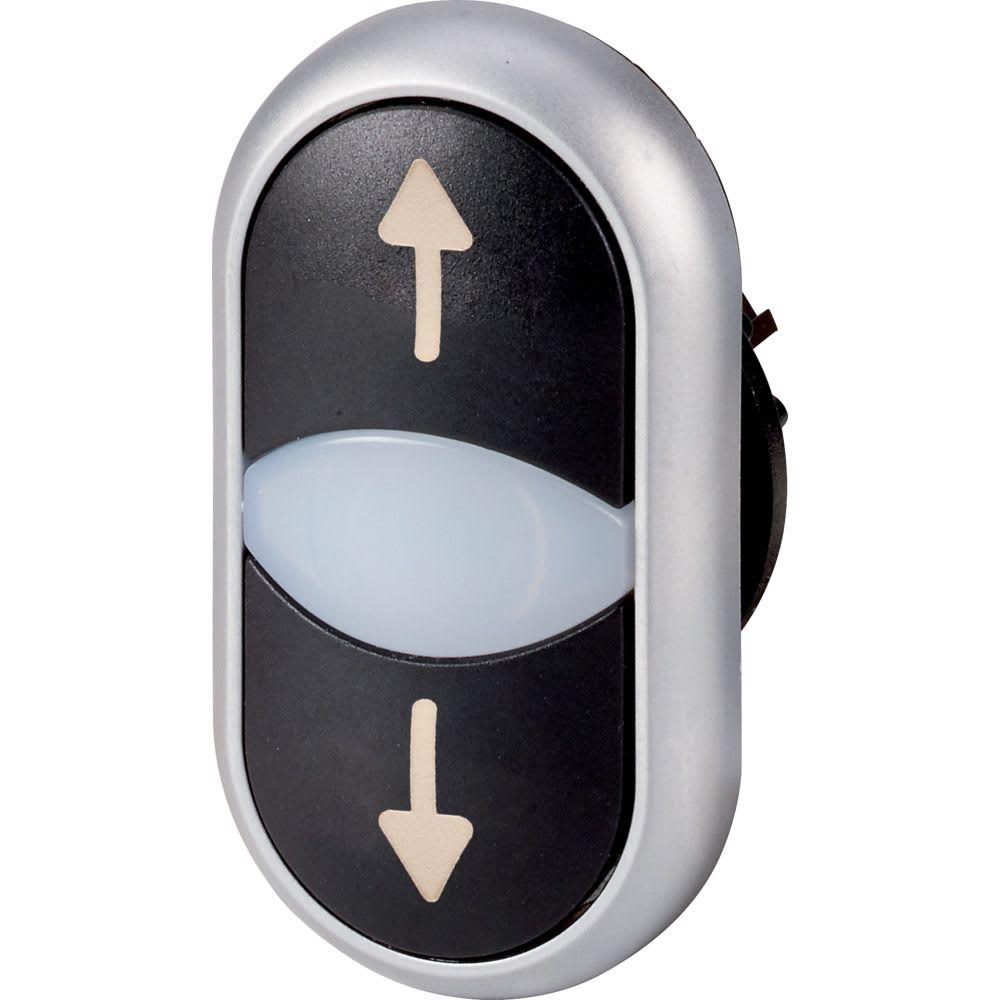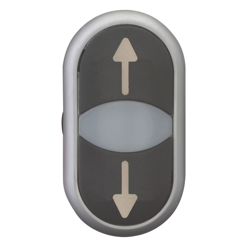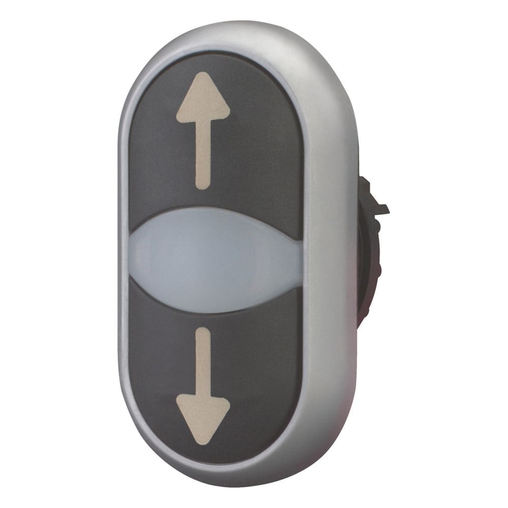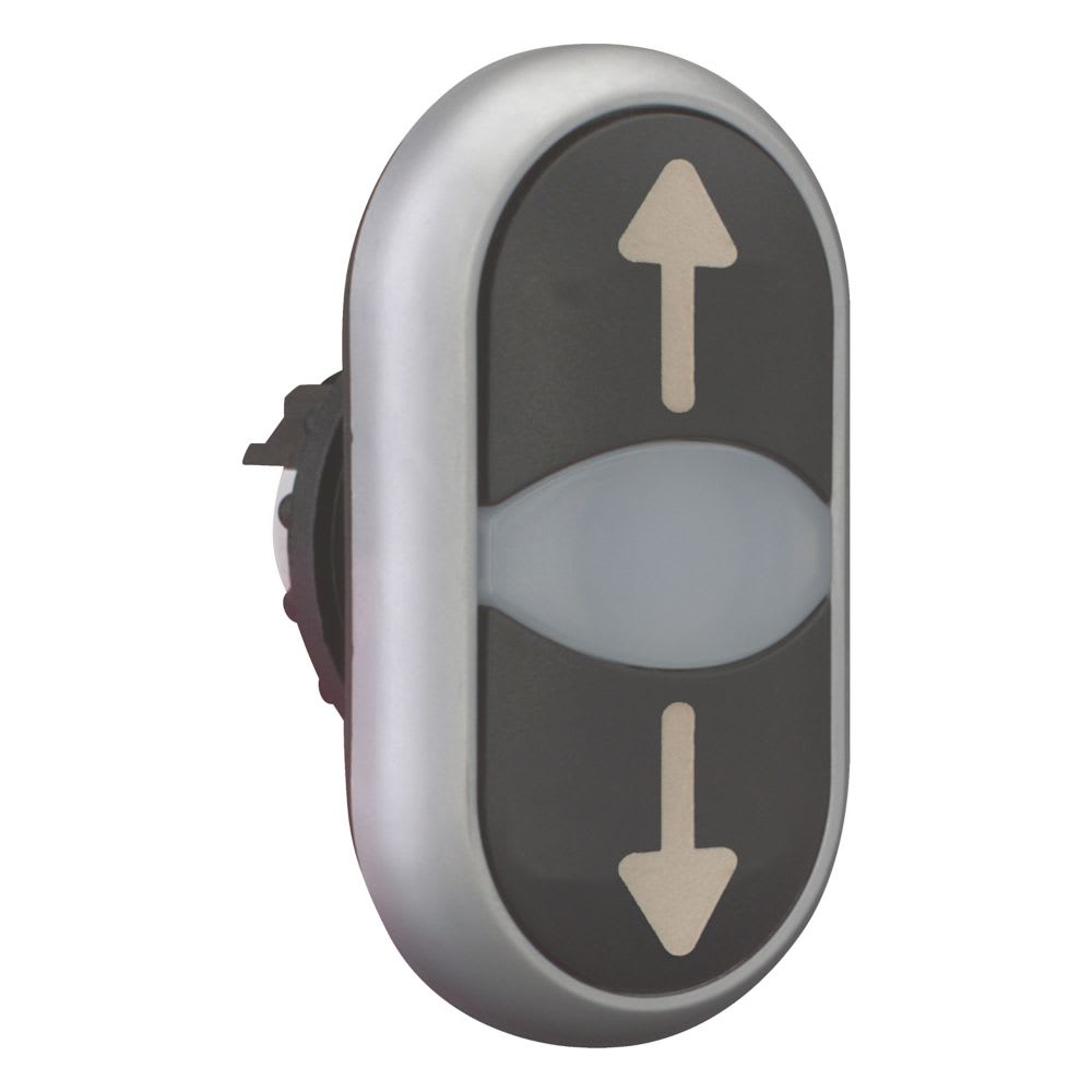 EATON INDUSTRIES - Pulsante doppio RMQ-Titan, Attuatori e spie non a filo ad impulso, Lenti bianche nero con dicitura Ghiera frontale colore titanio freccia M22-DDL-S-X7/X7 PULS. DOP. LUM. IMP. N. 216710