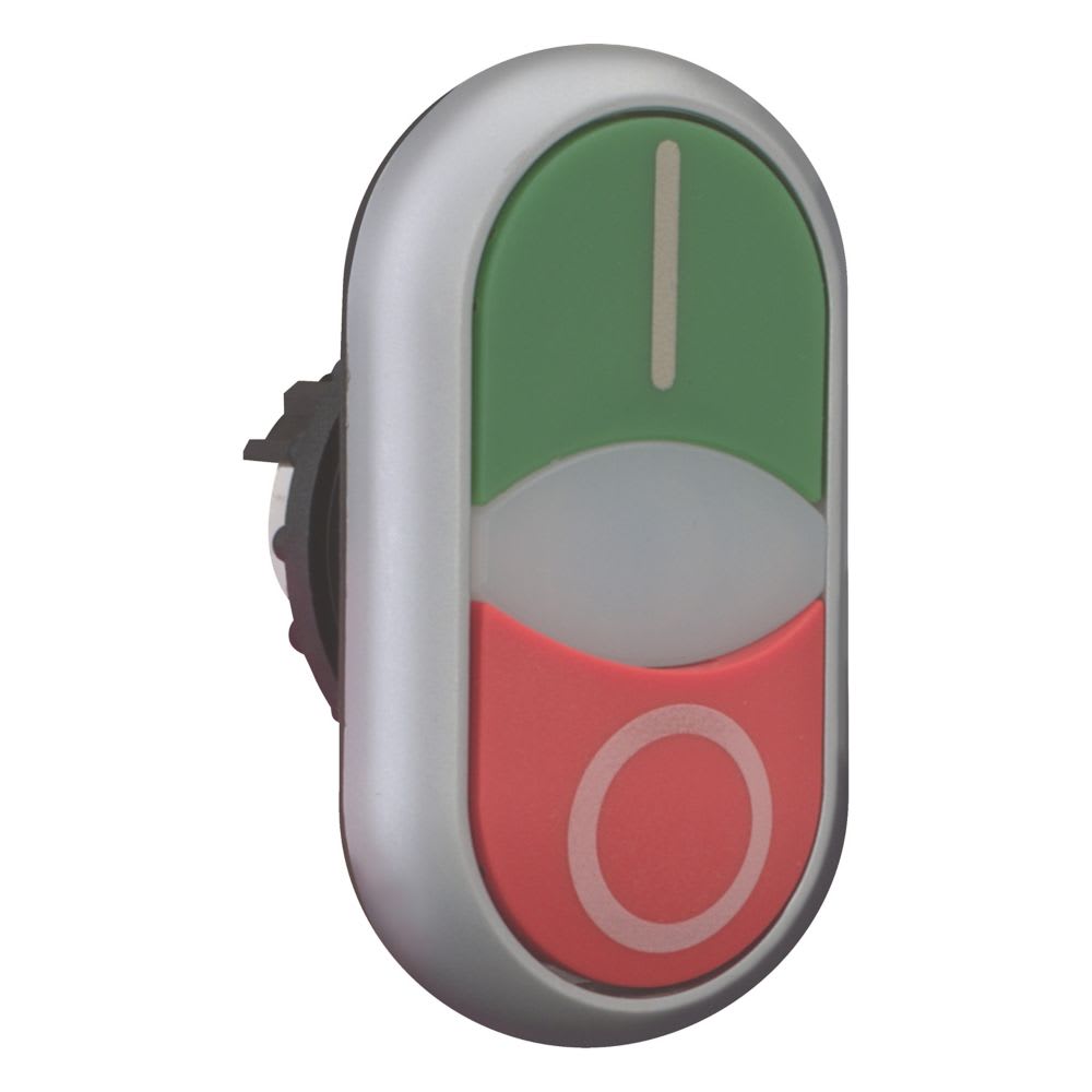 EATON INDUSTRIES - Pulsante doppio RMQ-Titan I e spia a filo 0 non a filo ad impulso Lenti bianche verde rosso con dicitura Ghiera frontale co M22-DDLM-GR-X1/X0 PULS DOPPIO LUM. 284830