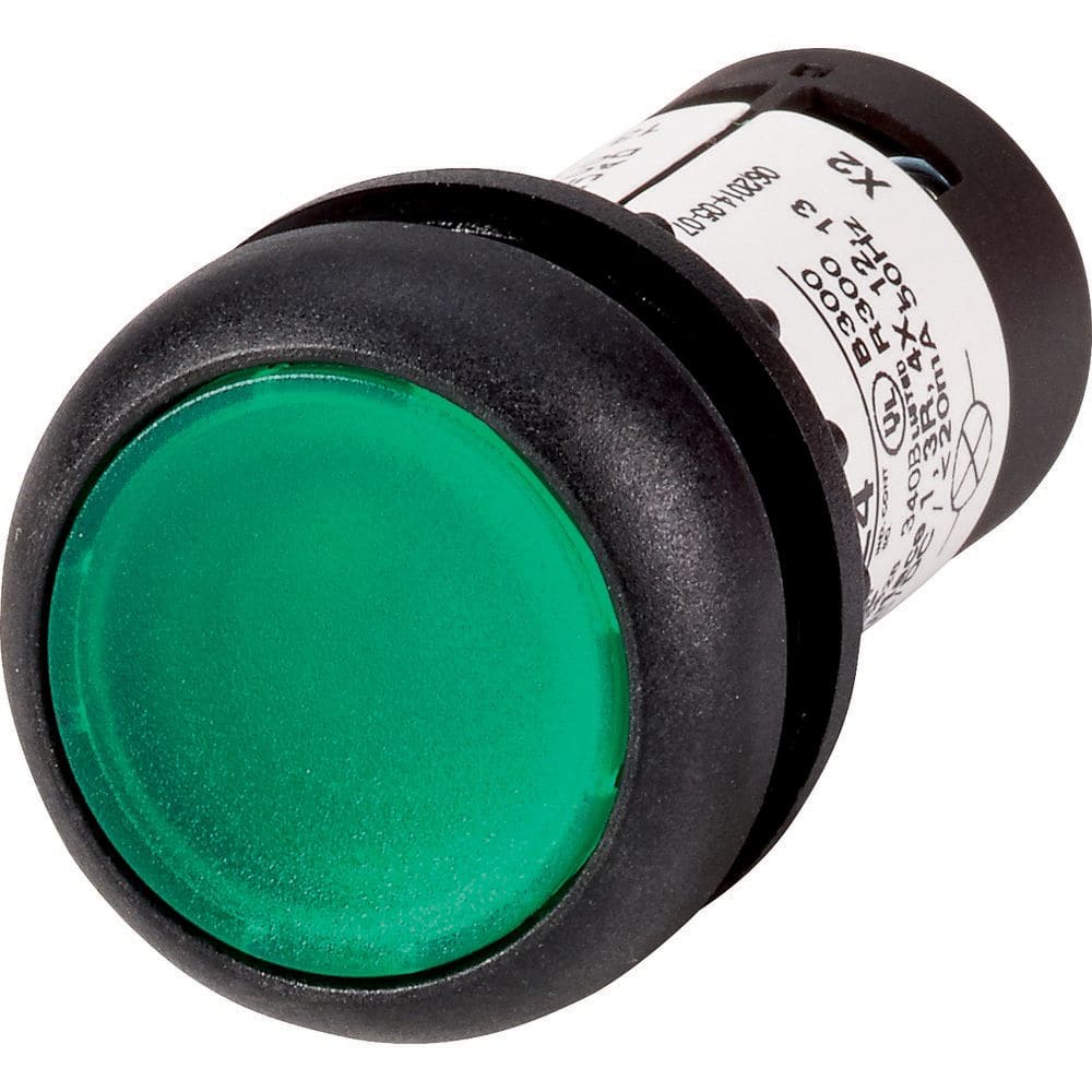 EATON INDUSTRIES - Pulsante luminoso piatto ad impulso 1 NA collegamento a bullone LED verde senza scritta 120 V AC anello frontale colore nero C22S-DL-G-K10-120. 136633