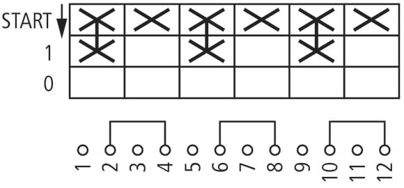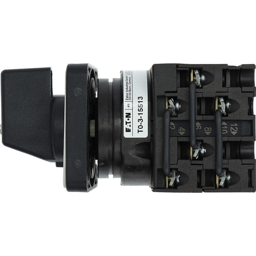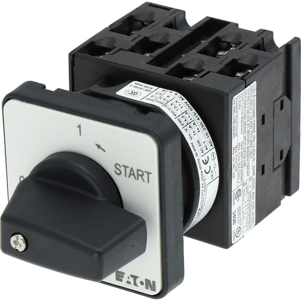 EATON INDUSTRIES - Pulsante on/off, T0, 20 A, montaggio a incasso, 3 unità costruttive, contatti: 6, con ritorno in posizione start, 90°, ritentivo, con posizione 0 - T0-3-15513/e comm. camme 3p 0-1-start(rit.