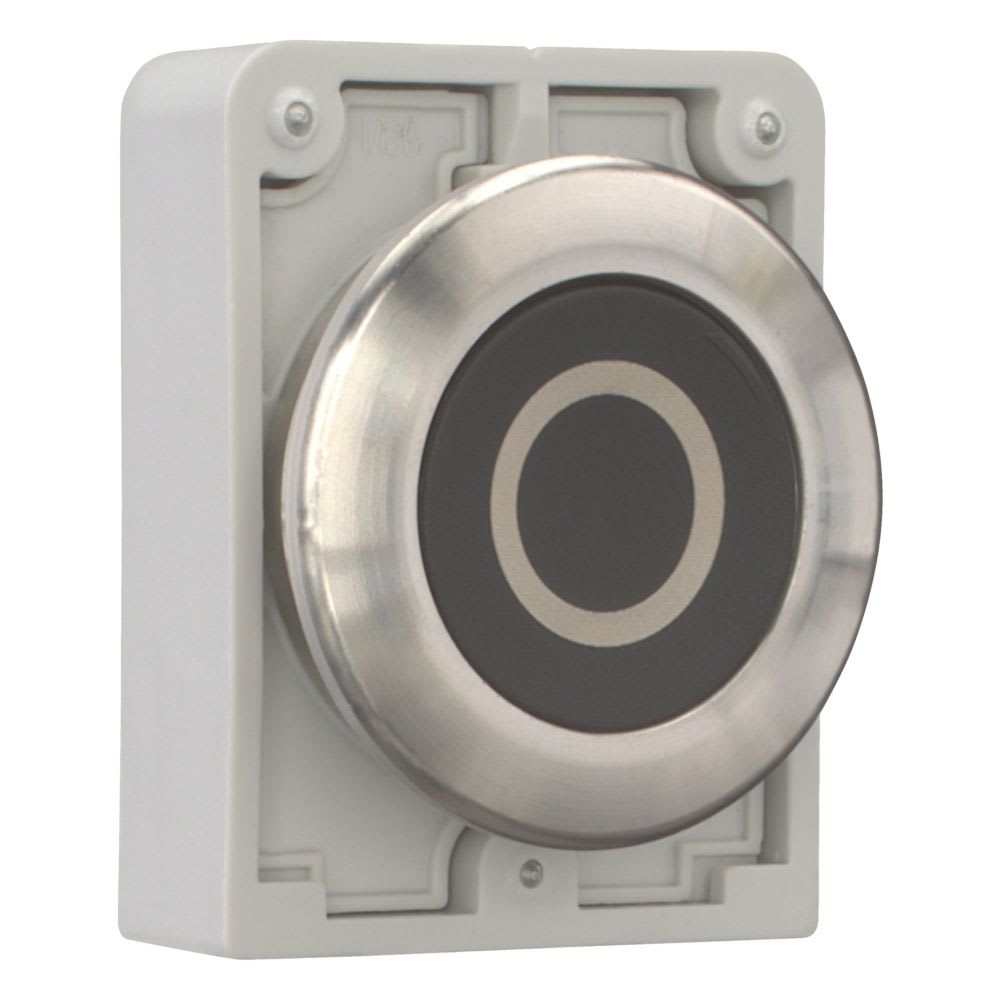EATON INDUSTRIES - Pulsante RMQ Titan piatto permanente nero con dicitura Anello anteriore in acciaio inossidabile M30I FDR SX0 PULS D30 A FILO NERO STAB