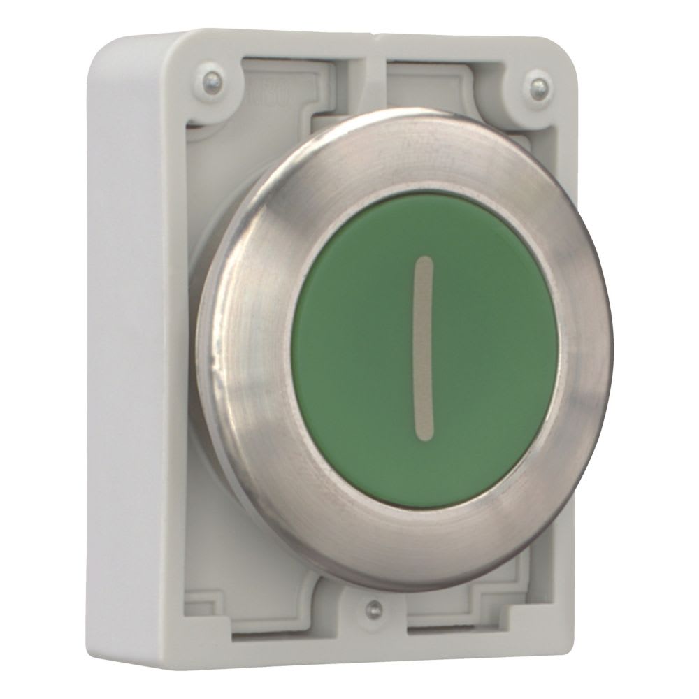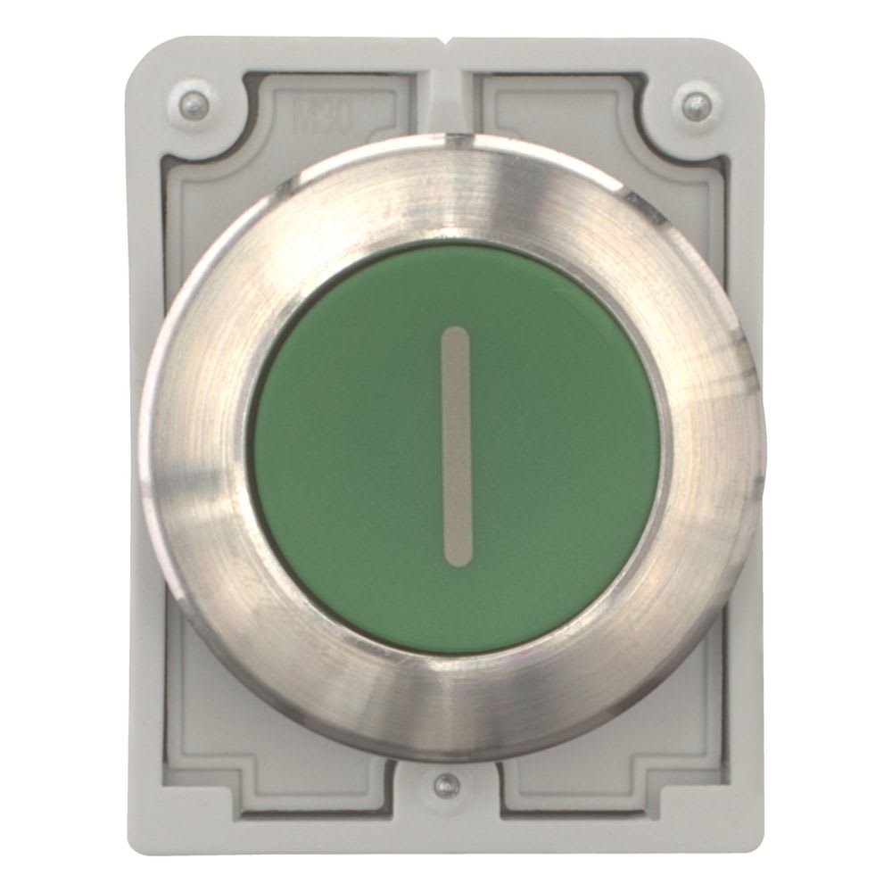 EATON INDUSTRIES - Pulsante RMQ Titan piatto permanente verde con dicitura Anello anteriore in acciaio inossidabile M30I FDR G X1 D30 A FILO STAB.