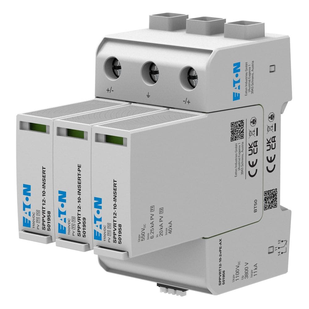 EATON INDUSTRIES - PV-SPD 1000V Classe 1 e 2 testato in combinazione SPPVRT12-10-2+PE T12 1000VDC.