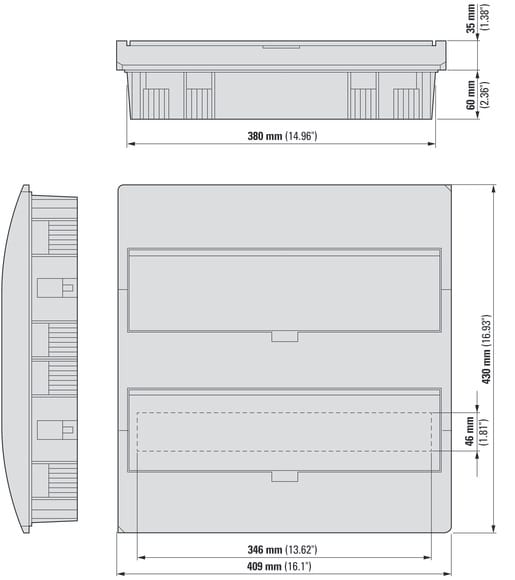 EATON INDUSTRIES - Quadro distribuzione compatto ECO, incasso, 2 file, 18 unità passo, IP40 BC-U-2/36-TW-ECO CENTR. INC.P./C. IP40 3