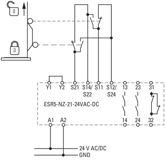 EATON INDUSTRIES - Relè di sicurezza a due mani, 24VAC/DC, bicanale, 2 circuiti di abilitazione ESR5-NZ-21-24VAC-DC RELE SICUREZZA. 118703