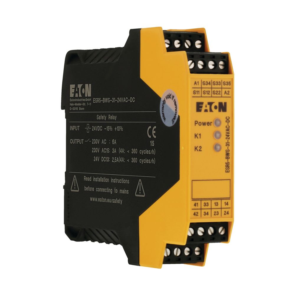 EATON INDUSTRIES - Relè di sicurezza per monitoraggio arresto d'emergenza/porta di protezione/griglia ottica, 24V AC/DC, 3 circuito di abilitazione.