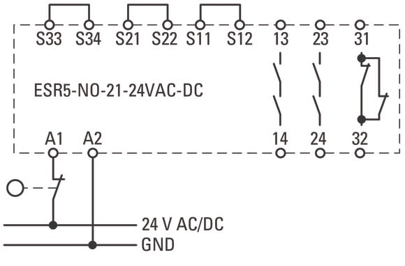 EATON INDUSTRIES - Relè sicurezza arresto emergenza/porta protezione, 24VAC/DC, 2 circuiti abilitazione ESR5-NO-21-24VAC-DC.