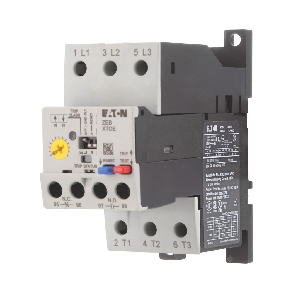EATON INDUSTRIES - Relè termico 4-20A, montaggio separato, protezione di terra, 1 NA, 1 NC, ZEB32-20-GF/KK. 136500